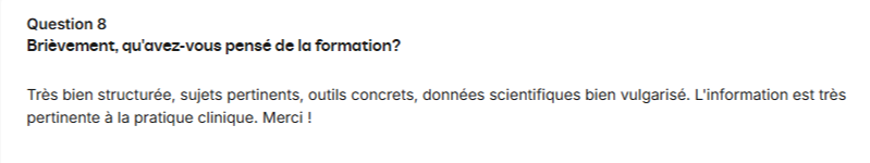 Vos commentaires sur la formation